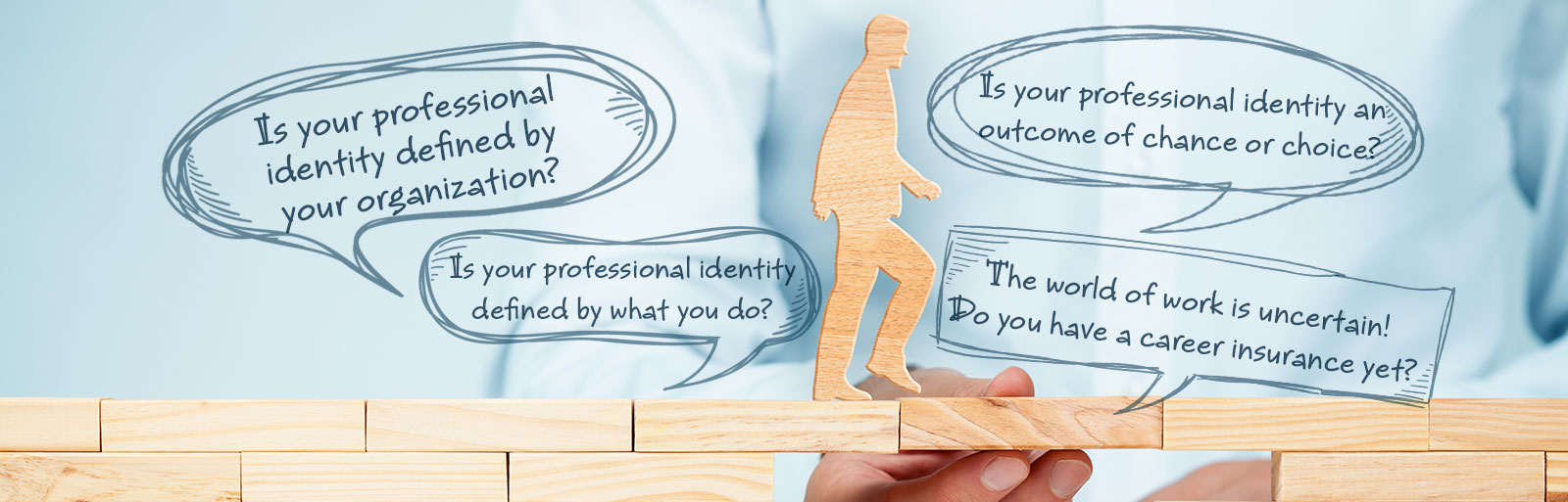 Organizations and roles have been the main referents to work identity for most people while professions confined to a few certified career streams. Withdrawal of the organizational identity leaves people on a quest to rediscover their state of belonging. Focused construction of professional identity achieves balance between belonging and individuality.